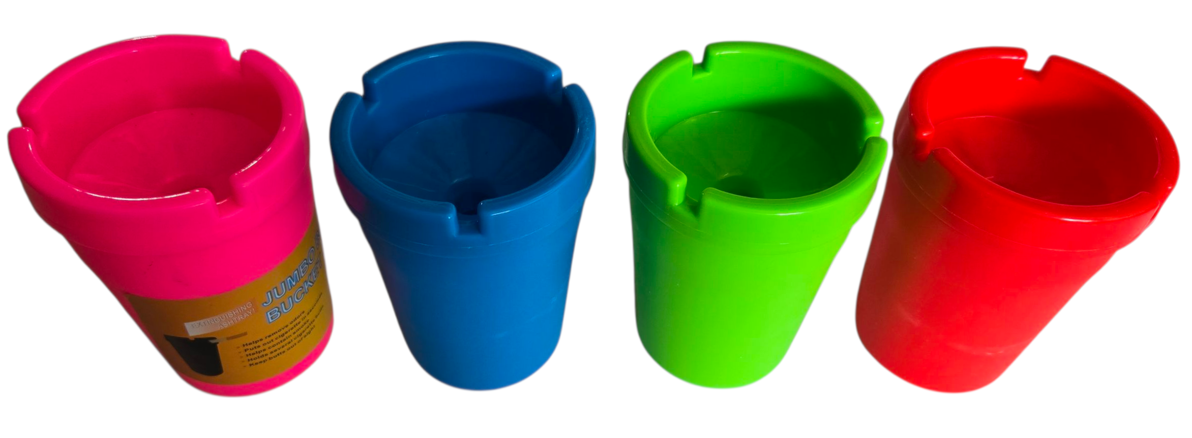 Ash1EC  2 in 1 Plastic Colored Cup Ashtray, 12 pcs/Tray, $1.25/Pc